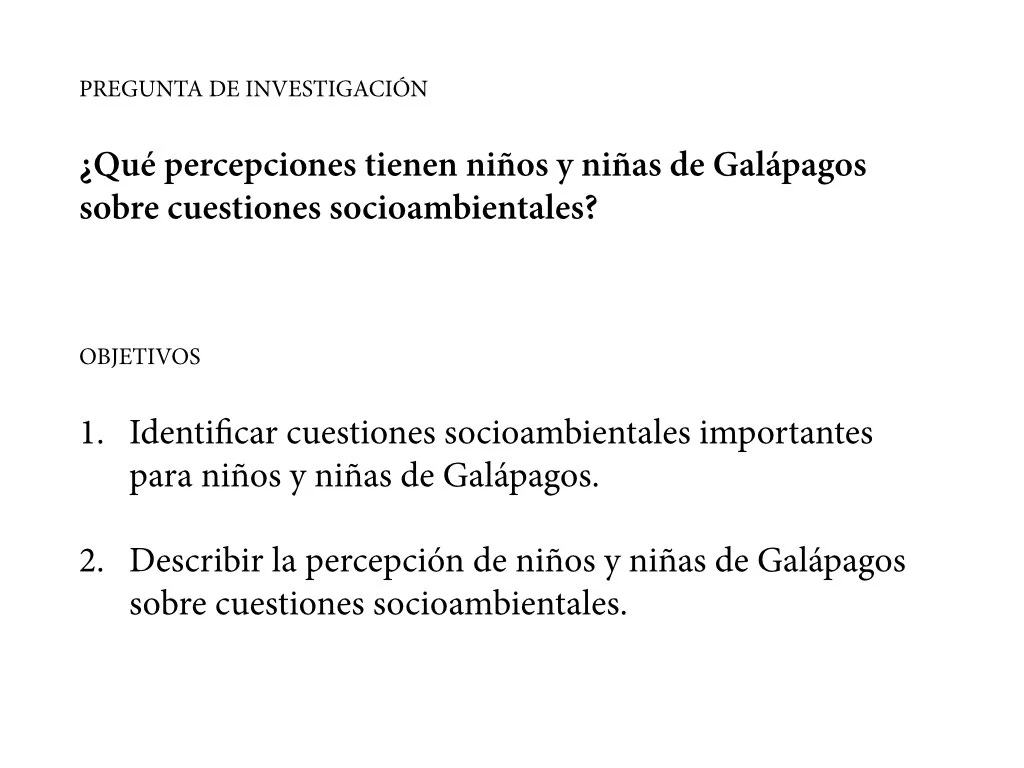 Thesis: “Perception of the Children of Galapagos on Socioenvironmental Issues”.